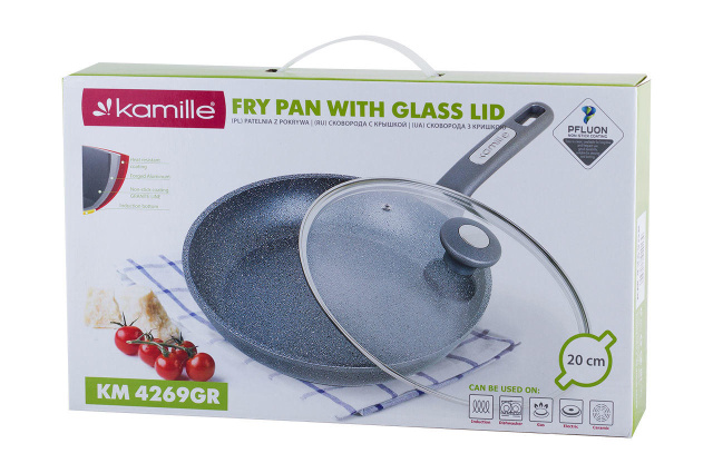 Сковорода антипригарная Kamille - 200 мм Granite с крышкой 1 шт.