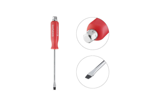 Отвертка шлицевая (плоская) ударная, закаленное и намагниченное жало, сталь CrV. Рабочая длина: 150 мм Вес, кг - 0.2 ; Вид - Ударные ; Длина рабочей части, мм - 150 ; Длина, мм - 150 ; Дополнительно - Тип насадки: SL: 8x150 мм, Рабочая длина: 150 мм ; Особенность - Ударная ; Производитель - Intertool ; Размер - SL8 ; Страна производитель - Китай ; Тип - Отвертка ; Форма - Плоские ;