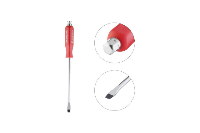 Отвертка шлицевая (плоская) ударная, закаленное и намагниченное жало, сталь CrV. Рабочая длина: 200 мм Вес, кг - 0.267 ; Вид - Ударные ; Длина рабочей части, мм - 200 ; Длина, мм - 200 ; Дополнительно - Тип насадки: SL: 9x200 мм, Рабочая длина: 200 мм ; Особенность - Ударная ; Производитель - Intertool ; Размер - SL9 ; Страна производитель - Китай ; Тип - Отвертка ; Форма - Плоские ;