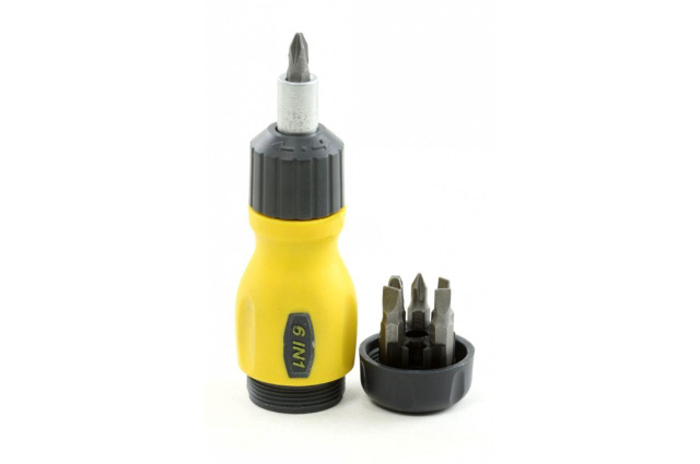 Отвертка реверсионная VT-1009 исключает перехваты рукоятки после каждого поворота винта, что обеспечивает удобство при работе с одной рукой. Эргономичная прорезиненная рукоятка обеспечивает удобство захвата, а также исключает проскальзывание инструмента. В наборе 6 бит. Магнитный фиксатор позволяет быстро и надежно фиксировать биты. Количество насадок: 5 ед.; Магнит: есть; Наличие реверса: есть Вес, кг - 0.167 ; Дополнительно - Отвертка реверсивная со сменными битами: SL4, SL5, SL6, PH1, PH2 и PH3. ; Количество, шт. - 6 ; Особенность - Реверсивная ; Производитель - Intertool ; Размер - SL4-6/PH1-3 ; Страна производитель - Китай ; Тип - Отвертка ;
