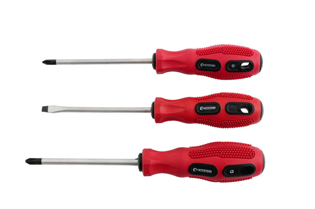 Набор отверток из 3-х штук: SL5, PH1 и PH2. Длина 100 мм. Отвертки имеют эргономичкую ручку. Длина отвертки: 100 мм Вес, кг - 0.308 ; Длина, мм - 100 ; Дополнительно - Длина отвертки: 100 мм, Тип насадок: SL5; PH1, PH2 ; Количество, шт. - 3 ; Производитель - Intertool ; Размер - SL5/PH1-2 ; Страна производитель - Китай ; Тип - Набор отверток ;