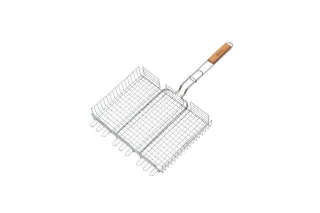 Конструкция решетки обеспечивает устойчивое положение на мангале. Антипригарное покрытие, не дает возможности прилипать к прутьям. Удобная ручка помогает легко переворачивать решетку, не обжигая рук. Регулируемая высота решетки, удобна для использования различных продуктов Длина, мм - 300 ; Производитель - Maestro ; Размеры, мм - 300 х 400 ; Страна производитель - Китай ; Тип - Решетка-гриль ;
