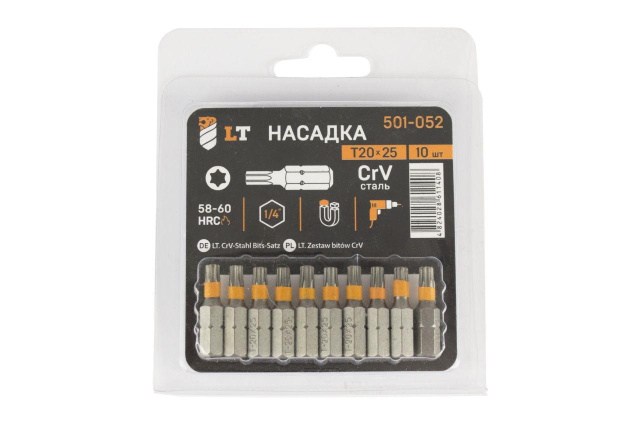 Биты изготовлены из высококачественной легированной стали, что обеспечивает максимальную износостойкость и долгий срок службы. Длина, мм - 25 ; Дополнительно - Только кратно 10 шт. ; Производитель - LT ; Размер - Т20 ; Страна производитель - Китай ; Тип - Бита ;