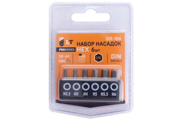 Предназначены для использования в качестве сменных насадок в ручном и механизированном инструменте. Насадки изготовлены из легированной стали, имееют высокопрочные рабочие поверхности. Количество, шт. - 6 ; Производитель - LT ; Размер - Н ; Страна производитель - Китай ; Тип - Набор бит ;