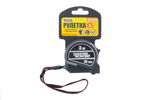 Стальное полотно с нейлоновым покрытием двухкомпонентный корпус с TPR покрытием фиксатор полотна кнопка «Стоп» клипса на пояс. 2 фиксатора Вес, кг - 0.154 ; Длина, м - 3 ; Дополнительно - Размер, м: 0,125x0,08x0,04; 2 фиксатора Стальное полотно с нейлоновым покрытием двухкомпонентный корпус с TPR покрытием фиксатор полотна кнопка «Стоп» клипса на пояс ; Производитель - Mastertool ; Страна производитель - Китай ; Тип - Рулетка ; Ширина, мм - 16 ;