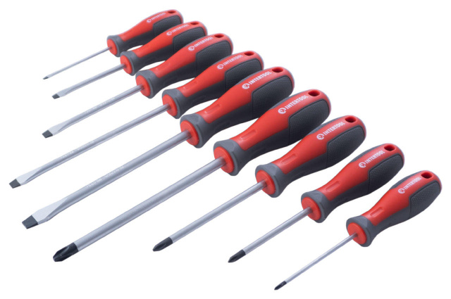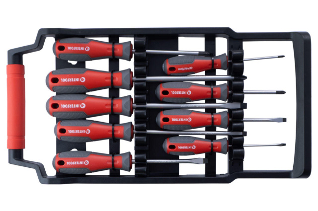 Набор отверток изготовлен по последним технологиям и соответствует высоким запросам мастеров. Предназначен для монтажа и демонтажа резьбовых соединений с типом шлица: SL3, SL5, SL6, SL8, PH0, PH1,PH2, PH3. Комплект станет отличным помощником в домашнем арсенале инструмента, а также в собственной мастерской, на производстве. Высокое качество стали Стержень отверток изготовлен из прочной Cr-V стали, которая известна всем мастерам своей надежностью и выносливостью. В составе этой стали присутствуют хром и ванадий, которые придают изделию высокую стойкость к износу. Также сталь отличается долговечностью и не подвержена хрупкому разрушению. Конструкция отверток продумана до мелочей Стержень глубоко посажен в рукоятку и крепиться в двух местах, что исключает возможность срыва. Намагниченный наконечник Отвертки имеют усиленный магнитный наконечник, который удерживает крепеж и облегчает работу в труднодоступных местах. Удобная рукоятка Форма ручек обеспечивает максимальную эффективность от приложенного усилия. Прорезиненная двухкомпонентная рукоятка удобно лежит в руке и не выскальзывает из ладони. Яркая маркировка на конце рукоятки позволяет быстро найти необходимый тип и размер отвертки. Отвертки укомплектованы в удобный держатель с ручкой, который фиксирует каждую отвертку и позволяет без труда транспортировать весь набор. Комплект также можно подвесить на стену, предусмотрены специальные отверстия для крепления. Комплектация Отвертки: SL3*75мм, SL5*75мм, SL6*100мм, SL6*150мм, SL8*150мм, PH0*75мм, PH1*75мм, PH2*100мм, PH3*150мм Материал рукояток: TPR резина; Длина отвертки: 75, 100, 150 мм; Количество в наборе: 9 ед.; Материал стержня отвертки: Cr-V сталь Вес, кг - 1.125 ; Дополнительно - Материал рукояток: TPR резина, Длина отвертки: 75, 100, 150 мм, Тип насадок: SL3, SL5, SL6, SL8, PH0, PH1,PH2, PH3, Количество в наборе: 9 ед., Материал стержня отвертки: Cr-V сталь ; Производитель - Intertool ; Размер - SL3, SL5, SL6, SL8, PH0, PH1,PH2, PH3 ; Страна производитель - Китай ; Тип - Набор отверток ;
